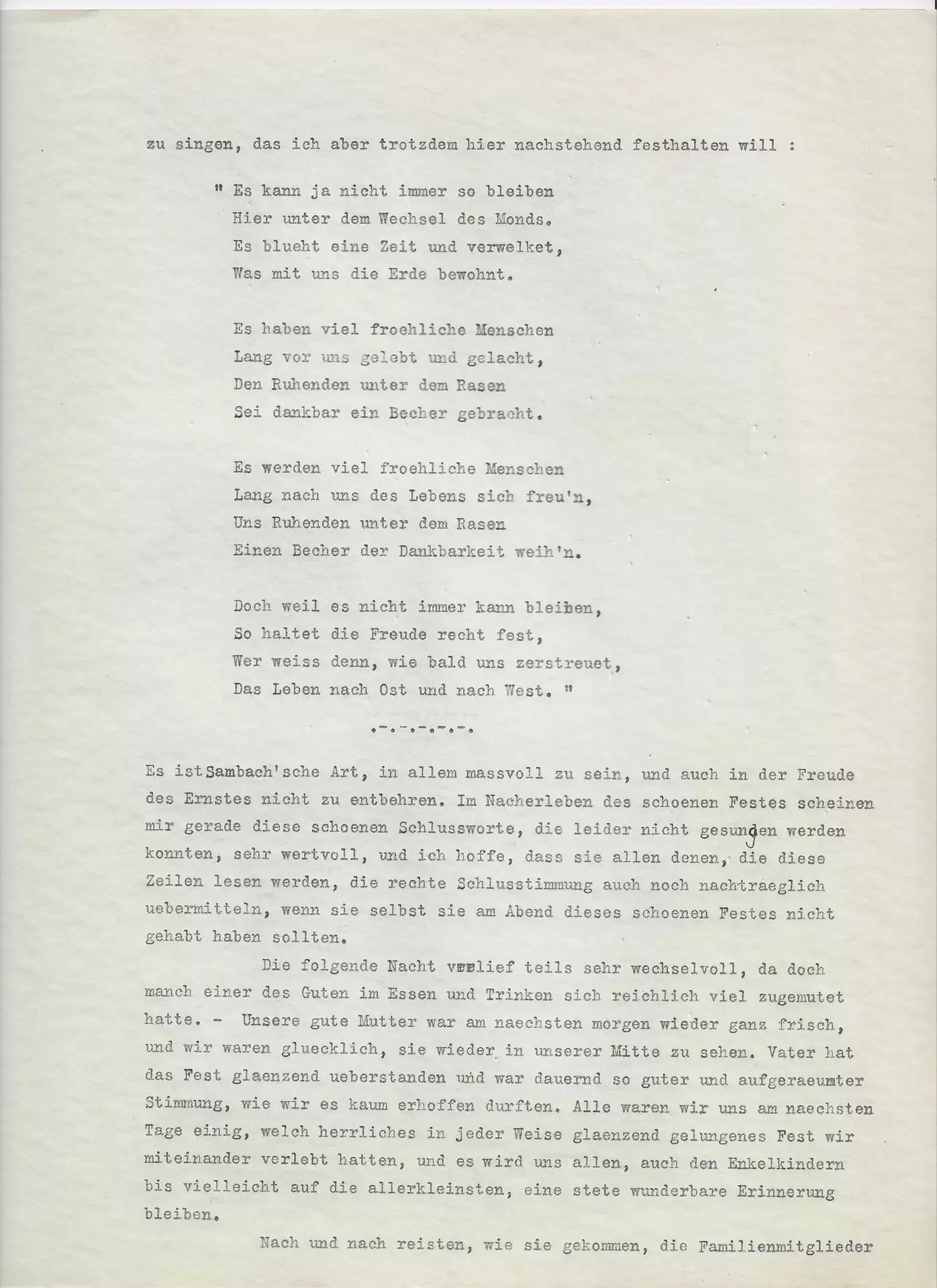 Zu Claras eigener Silberhochzeit 1946 - von ihrem Bruder Georg