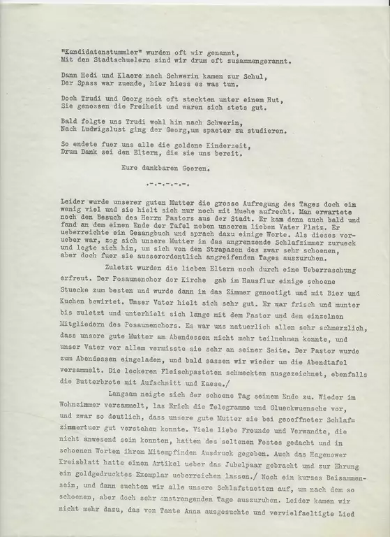 Zur goldenen Hochzeit von Claras Eltern 1938